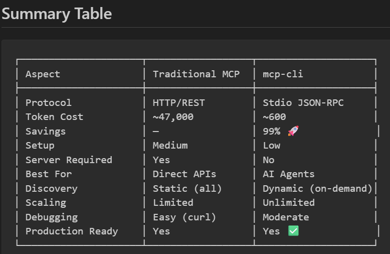 For AI agent systems, dynamic discovery via mcp-cli is becoming the standard. For direct integrations, traditional MCP HTTP endpoints work fine. The choice depends on your use case, but increasingly, the industry is trending toward mcp-cli for its efficiency and scalability.