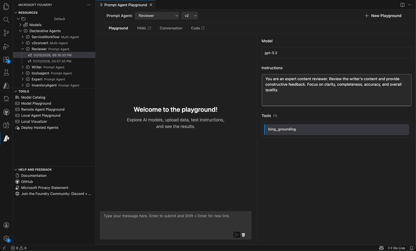 The January 2026 update for Microsoft Foundry extension in VS Code brings a follow update to the capabilities we introduced during Ignite of last year. We’re excited to announce a set of powerful updates that make building and managing AI workflows in Azure AI Foundry even more seamless. These enhancements are designed to give developers greater flexibility, visibility, and control when working with multi-agent systems and workflows.