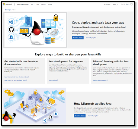 Asir Selvasingh from the Java on Azure engineering group has written a detailed paper called Code, Deploy, and Scale Java Your Way (view PDF). This paper provides a detailed look at the Java ecosystem that Microsoft has carefully curated and invested in for Java developers.