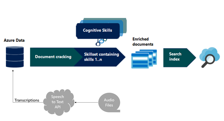 Figure 1: The traditional Cognitive Search diagram, with the addition, in grey, of the required audio files pre-processing step