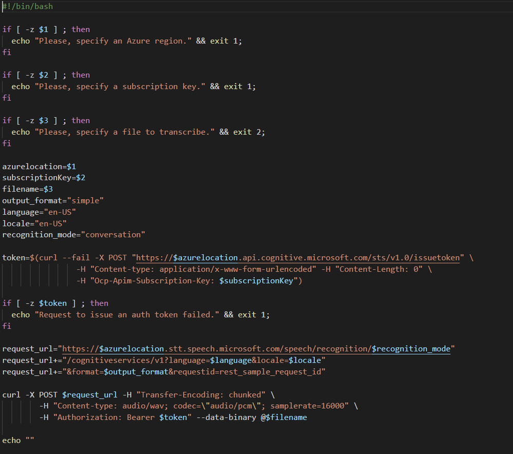 Figure 2: The script code to call the REST API for your audio files and get the transcription back.