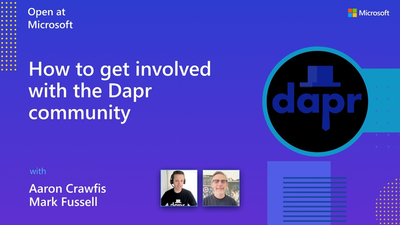 You can get actively involved in the Dapr community through participating in discussions at community engagements or writing a blog entry. Learn more about how to get involved with Mark Fussel and Aaron Crawfis on this next episode on the Open at Microsoft show series. The episode can also be viewed here on the Microsoft Learn TV platform.