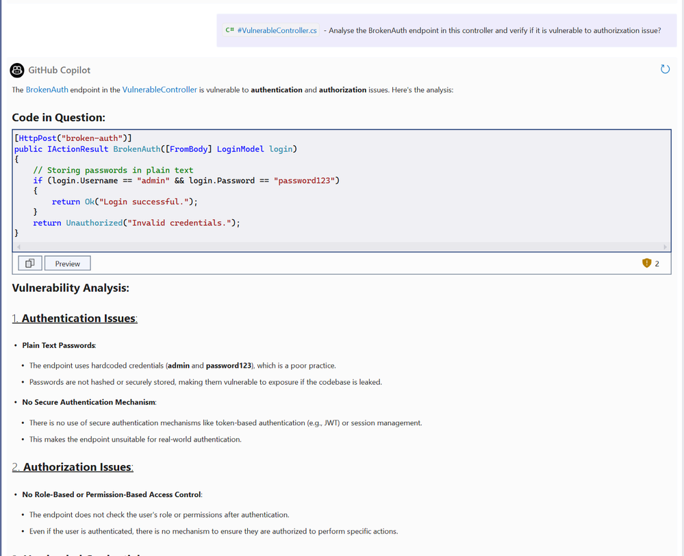GitHub Copilot, powered by AI, can analyse code snippets, suggest improvements, and even detect potential vulnerabilities. While it's not a replacement for manual reviews or automated scanners, it offers several advantages: