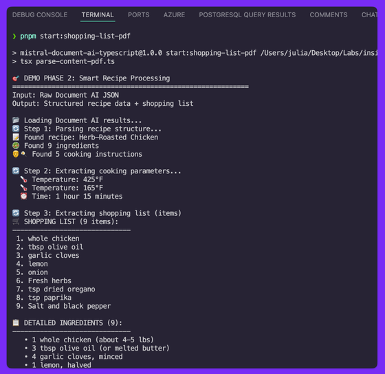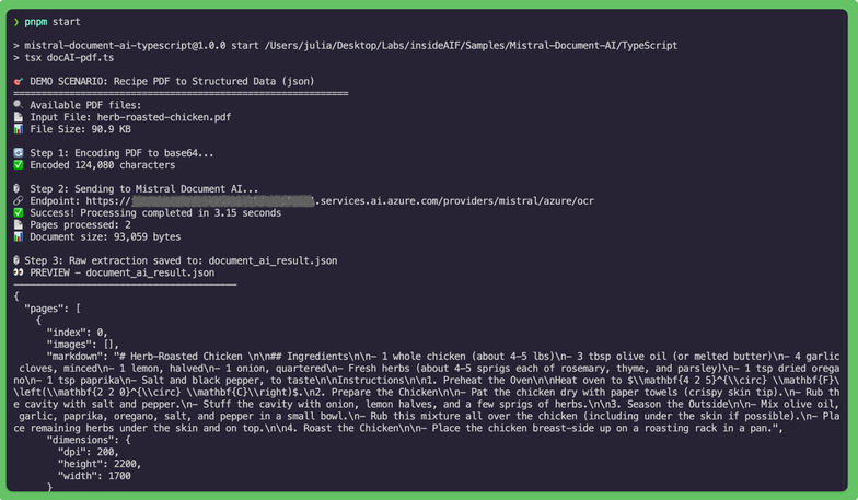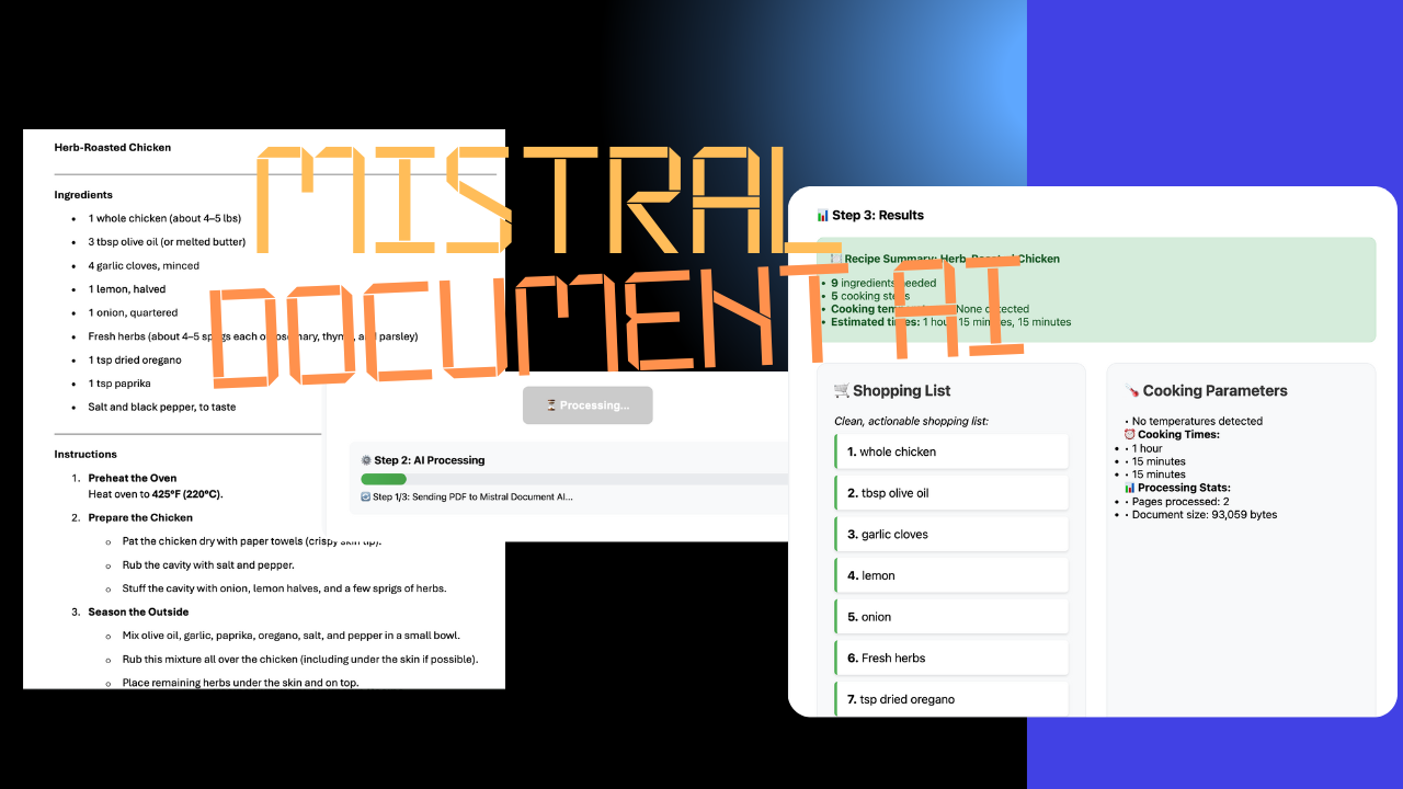 The code snippets below illustrate the key steps to process a recipe PDF using Mistral Document AI and extract structured data.