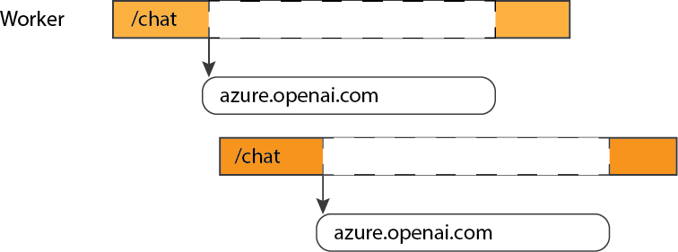 Why? Let’s imagine we’re using a synchronous framework like Flask. We deploy that to a server with gunicorn and several workers. One worker receives a POST request to the "/chat" endpoint, which in turn calls the Azure OpenAI Chat Completions API.