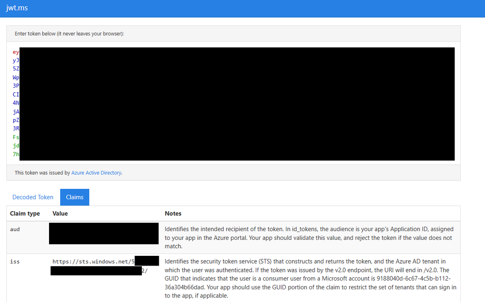 That didn't help me too much so, after spending an embarrassing amount of time digging through Microsoft Entra ID, I finally had the idea to actually grab a JWT token from my tenant and inspect it. You can grab a token (I'll write a future article on how to do this) and decode it in a tool like jwt.ms. Sure enough, looking at the token, the issuer is still https://sts.windows.net/{TenantID}. Once I corrected that, my VPN client was able to connect.