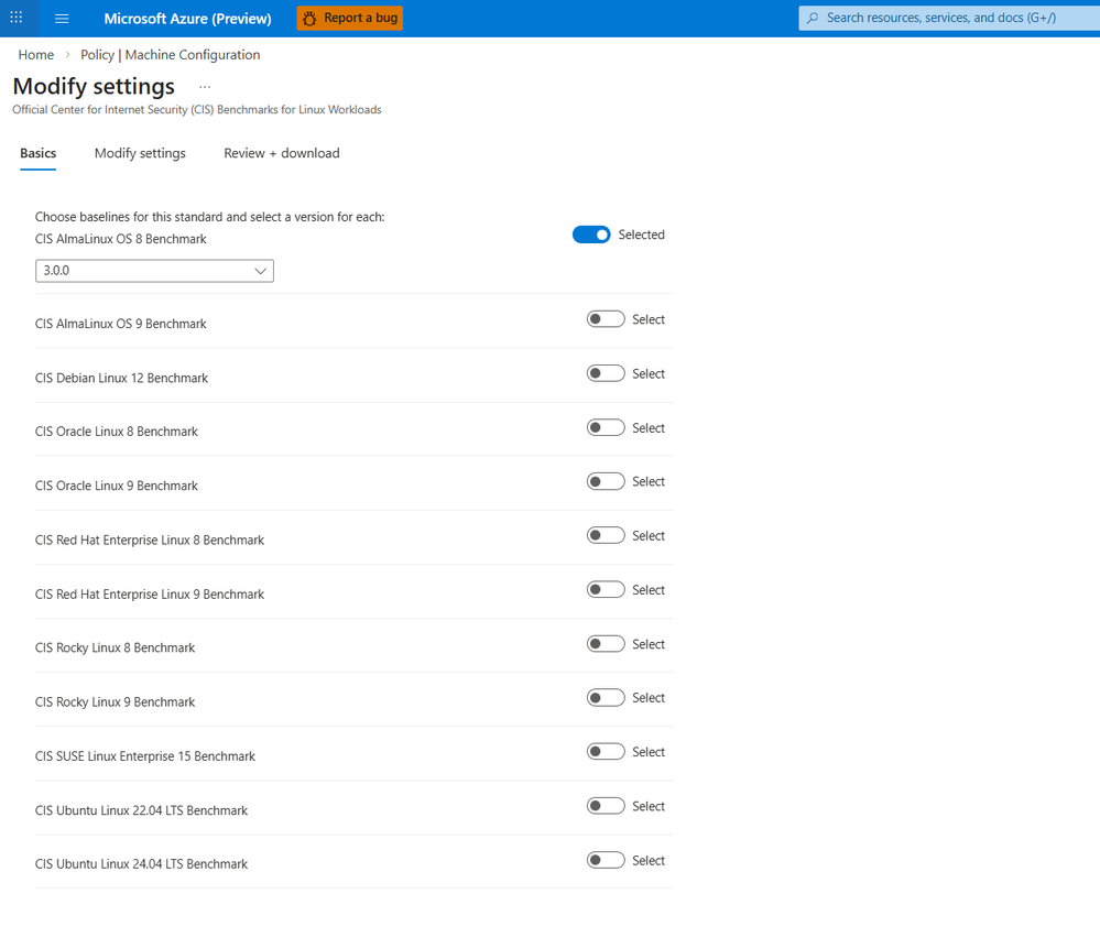 Getting started is easy, select the baseline that you’re interested in applying and adjust any settings based on business requirements.