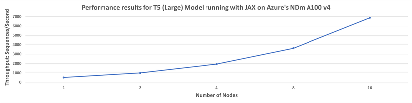 Figure 1: Showing performance results for training T5 ”large” model running with NVIDIA JAX container on Azure