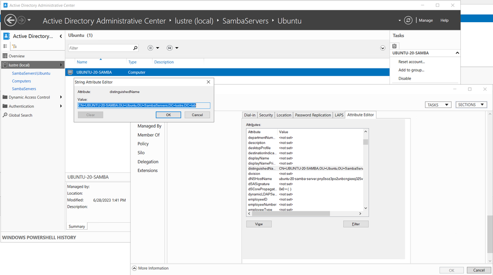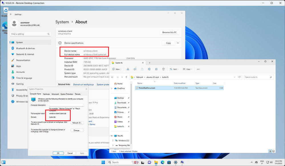 -rwx------. 1 LUSTRELAB\azureuser LUSTRELAB\domain users 0 Jul 3 18:22 TestWriteOnSAMBA.txt