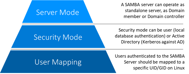 In general, when configuring a SAMBA server, three aspects are critical to plan: