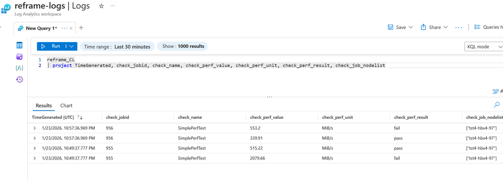 This is where the combination of ReFrame HPC, a powerful and feature rich testing framework, and Azure Log Analytics can help improve confidence and assurance in the performance and accuracy of a system.