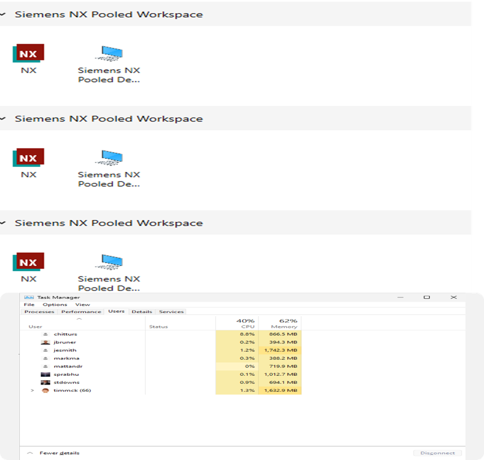 - Users' identity and credential must be set in Siemens Azure subscription to access the valid NX X licenses. Use accesses are granted through their companies Microsoft Entra ID. Siemens cloud subscription is required for NXX Saas application. When a user connects to a workspace, they authenticate via Entra ID, which enables modern security controls such as Conditional Access policies, Multi-Factor Authentication (MFA). This Azure AD integration means you can enforce who can access the virtual desktops under what conditions (for example, requiring MFA or compliant devices).