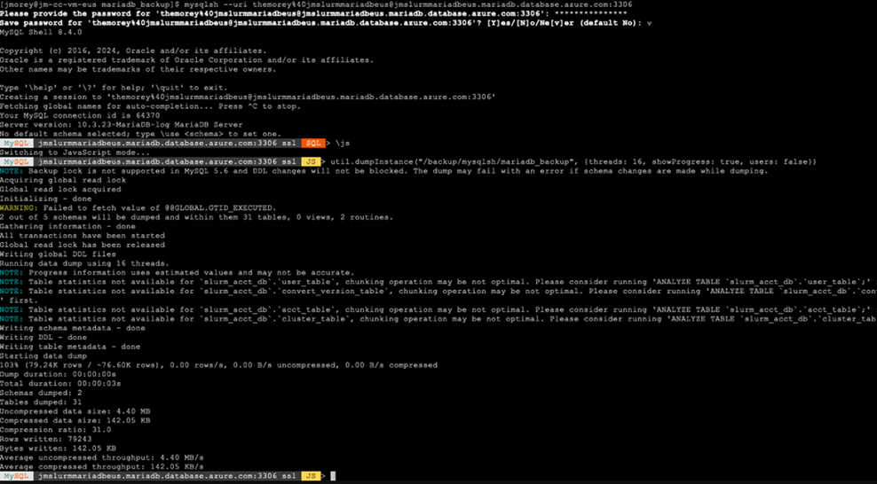 Step 2: Back up your SLURM Accounting DB in Azure Database for MariaDB