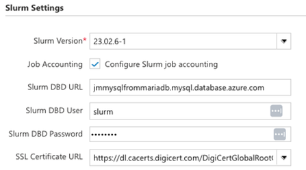- Slurm DBD Password = SLURM accounting DB password