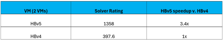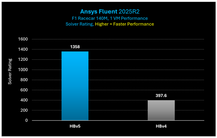 Figure 8: On ANSYS Fluent HBv5 VMs provide a 3.4x performance increase over HBv4 VMs.