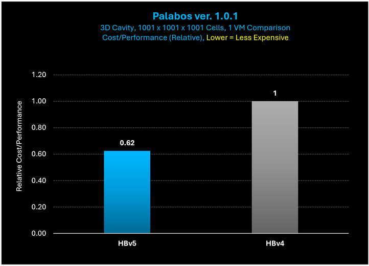 Figure 7: The cost to complete the Palabos 3D Cavity case is just 62% of what it costs to complete the same case on HBv4.