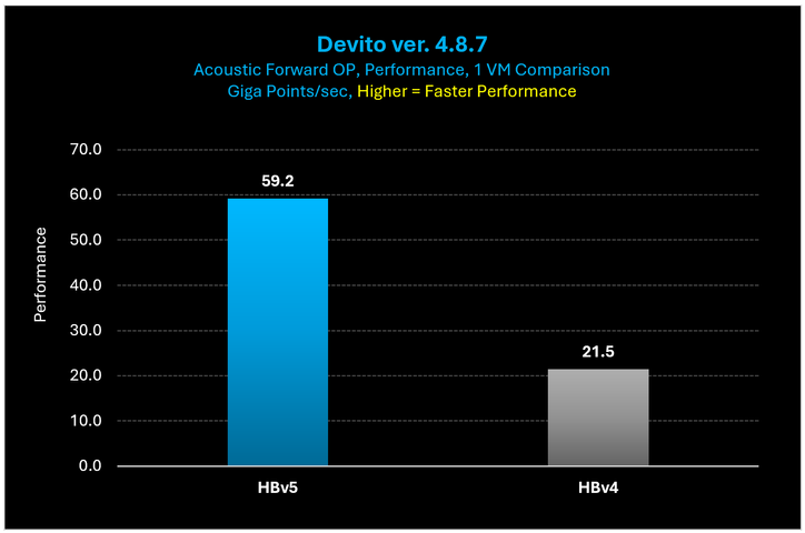Figure 14: On Devito, HBv5 VMs provide a 3.27x performance increase over HBv4 VMs.