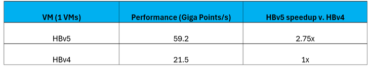 Absolute results and comparisons to HBv4 VMs are shown in Table 2, below: