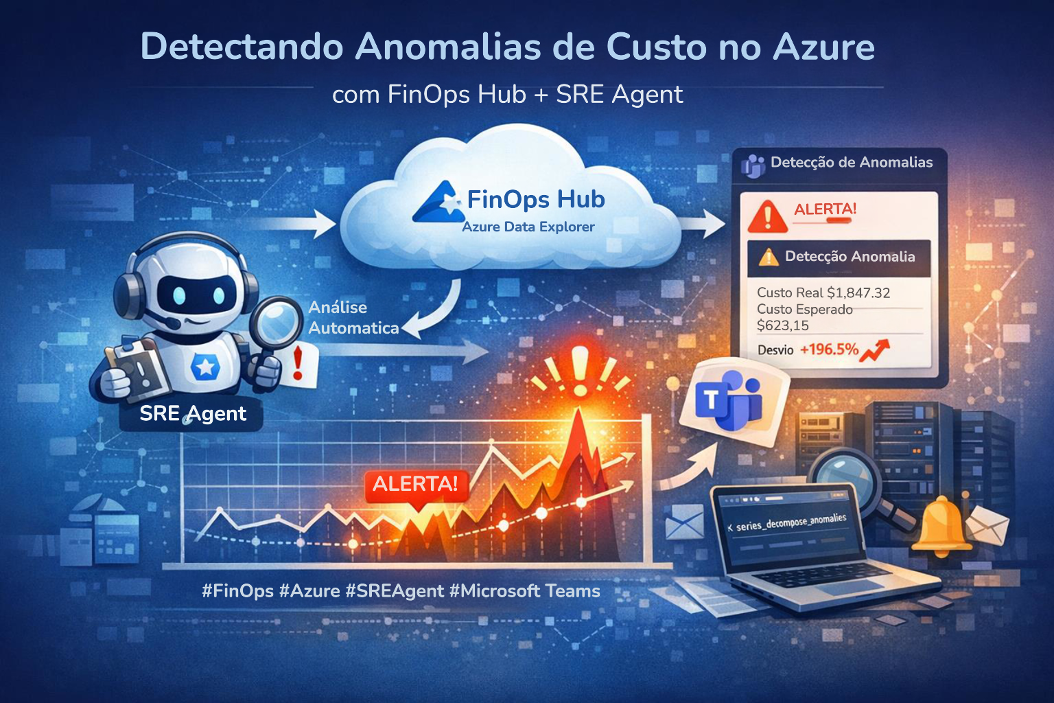 Neste artigo, vou mostrar como configurei uma análise automática diária de anomalias de custo usando o Azure SRE Agent, conectado ao FinOps Hub (Azure Data Explorer), com notificação automática no Microsoft Teams quando algo fora do padrão é detectado.