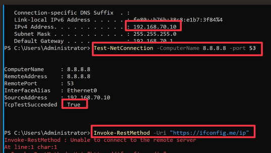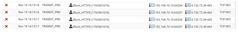 Podemos comprovar que o tráfego está sendo inspersionado fazendo um teste de conexão na porta 53 e outro teste https.