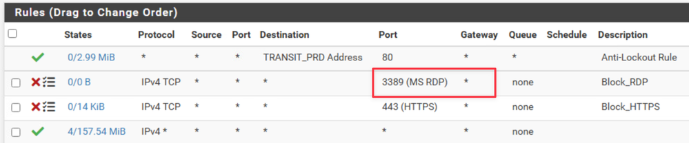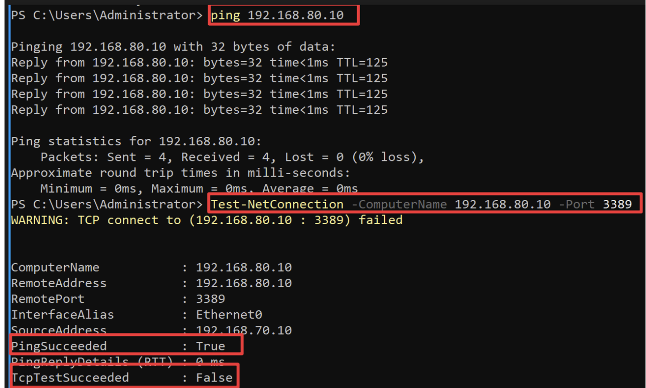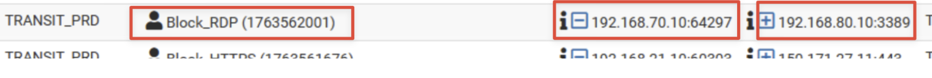 Para testar o tráfego leste oeste entre os Segmentos PRD_WEB ( VM 192.168.70.10 ) e DEV_WEB ( VM 192.168.80.10) , irei deixar ICMP liberado e bloquear a porta 3389 ( RDP)
