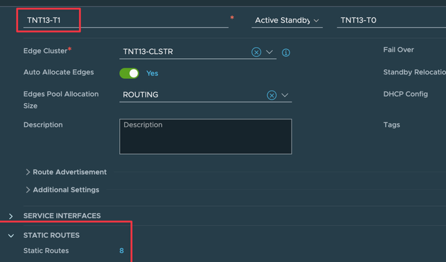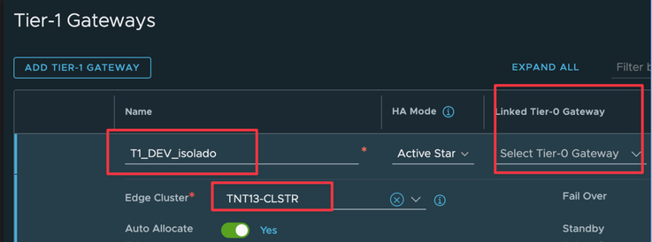 obs: o nome do gateway T1 é diferente em cada AVS SDDC, no meu ambiente é "TNT13-T1"