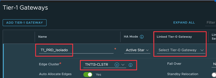 Importante: Estes gateway são "Isolados", portando não serão conectados ao TIER-0
