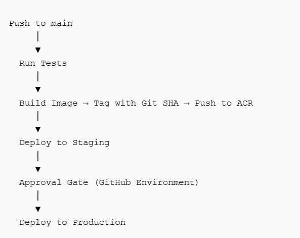 - The Git SHA is the image tag. Every deployment is fully traceable back to a specific commit.