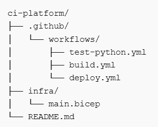 In Part 1 of this series, we build exactly that. A platform repository that defines reusable GitHub Actions workflows for testing, building, and deploying containerized services to Azure. Application repos stay thin — they simply call the platform, like invoking an API.