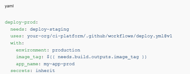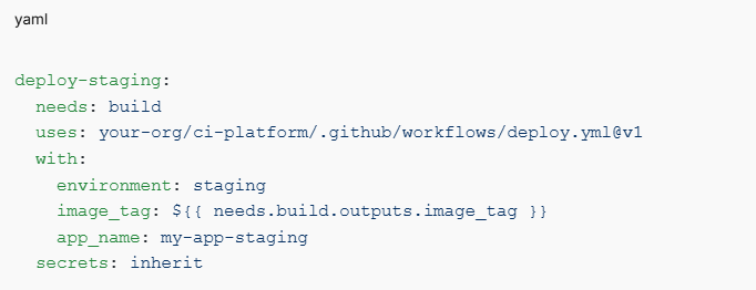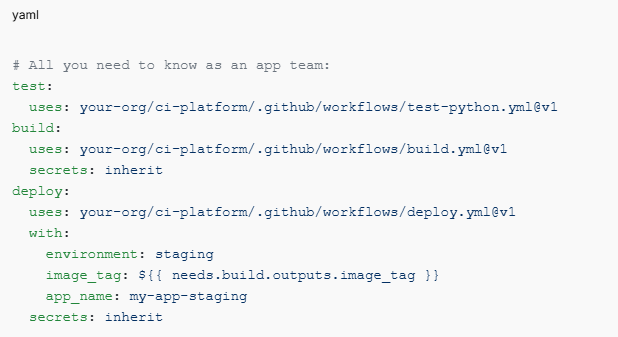 That means centralizing it. Versioning it. Exposing it as reusable, callable workflows — not copy-pasted YAML scattered across dozens of repos.