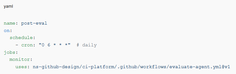 - Call evaluate-agent.yml from your platform.