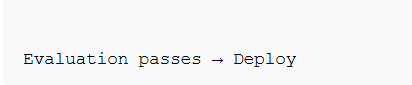 | Governance | Environment approval rules | Evaluation threshold + human review |