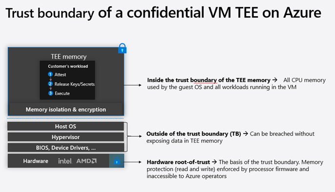 The Azure Boost confidential device (ABCD) is included in the Trusted Compute Base (TCB) for confidential virtual machines by integrating the Azure Boost subsystem with attested hardware. Rather than transferring data to a shared buffer, the confidential device can access encrypted memory within the VM directly through an IDE-encrypted PCIe connection, using TDISP (a PCI-SIG standard supported by all major CPU vendors). By avoiding intermediate buffers, this attested secure link maintains both the confidentiality and integrity of data, allowing information to move safely and efficiently between the CVM and Boost hardware.