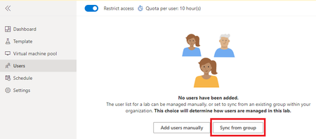 You can now sync the user list of a lab to an existing Azure Active Directory (AAD) group in https://labs.azure.com! Users and VMs are automatically added/deleted based on the AAD grou...