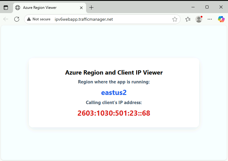 - IPv6 DNS and Connectivity: Confirm that each region’s IPv6 address is correctly configured and reachable globally. Azure’s public IPv6 addresses are globally routable. Traffic Manager itself is a global service and fully supports IPv6 in its decision-making.