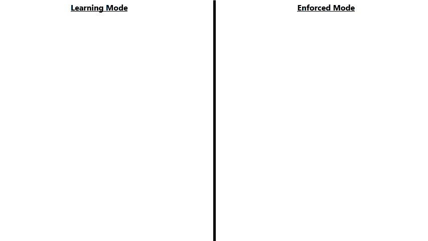 Figure 4: Image explaining the difference between Transition mode (formerly Learning Mode) and Enforced Mode