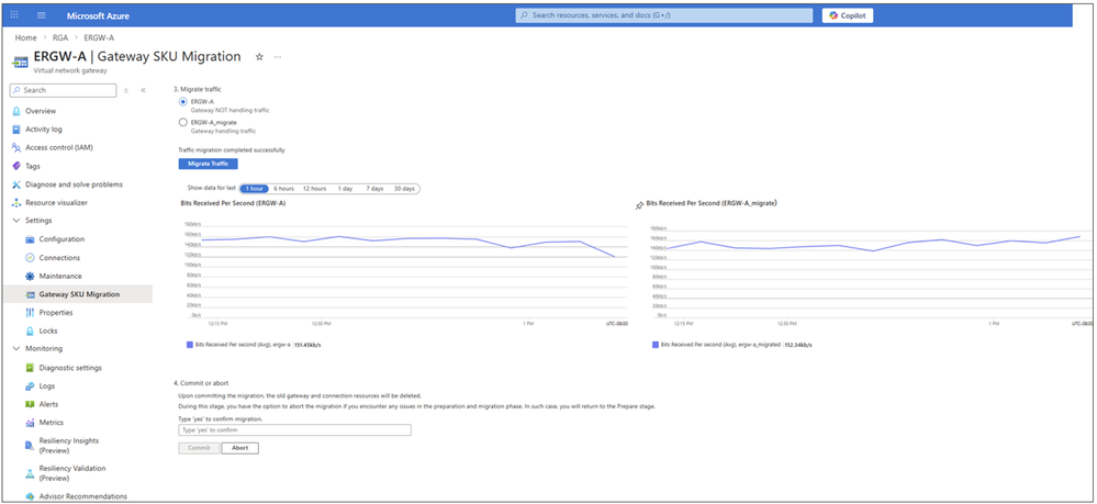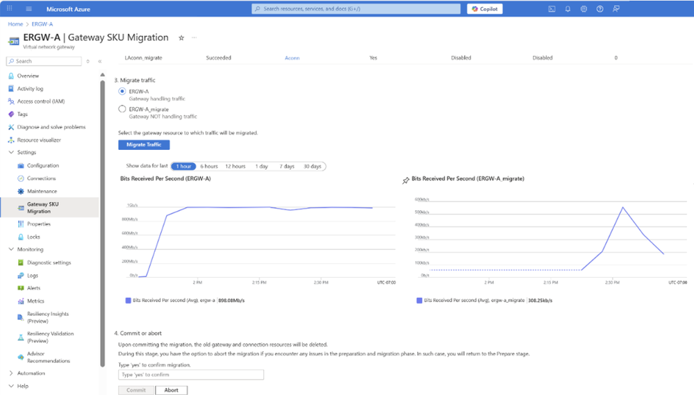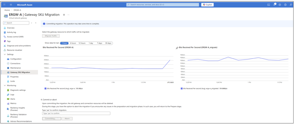 - Commit or abort: Finalizes the public IP SKU migration by removing the old gateway or reverts to the old gateway if needed.