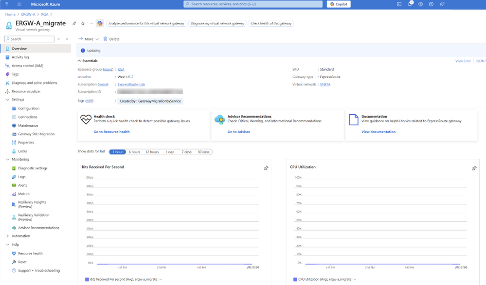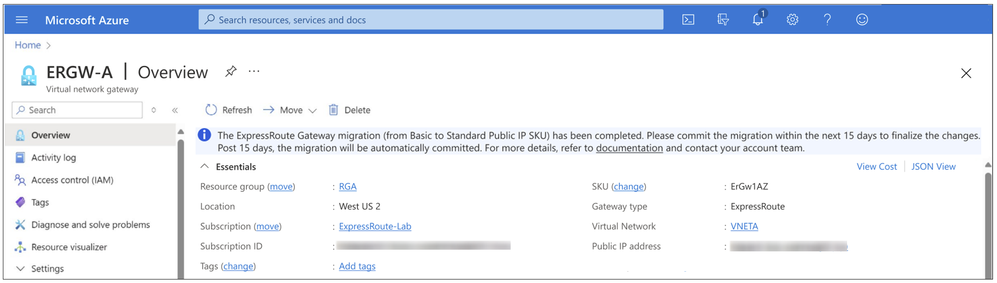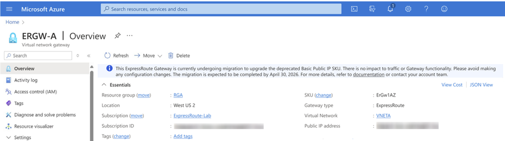 The ExpressRoute Gateway migration from Basic to Standard Public IP SKU is now complete.