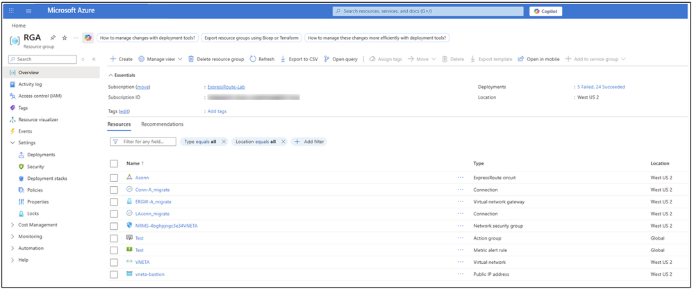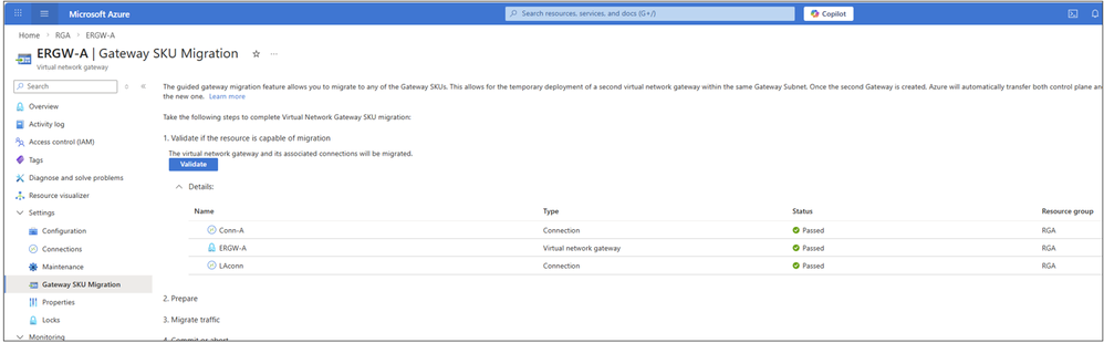 Finally, the resource group RGA contains only resources only related to the migrated gateway