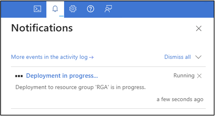 After the Prepare stage starts, a notification appears showing that new resources are being deployed to the resource group: