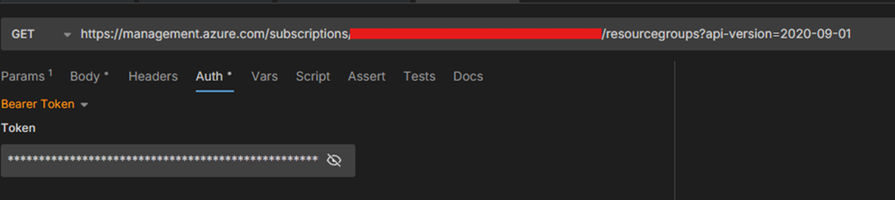 Using BRUNO, get the Bearer Token using the following PUT request and details we derived from the above Service Principal Creation.