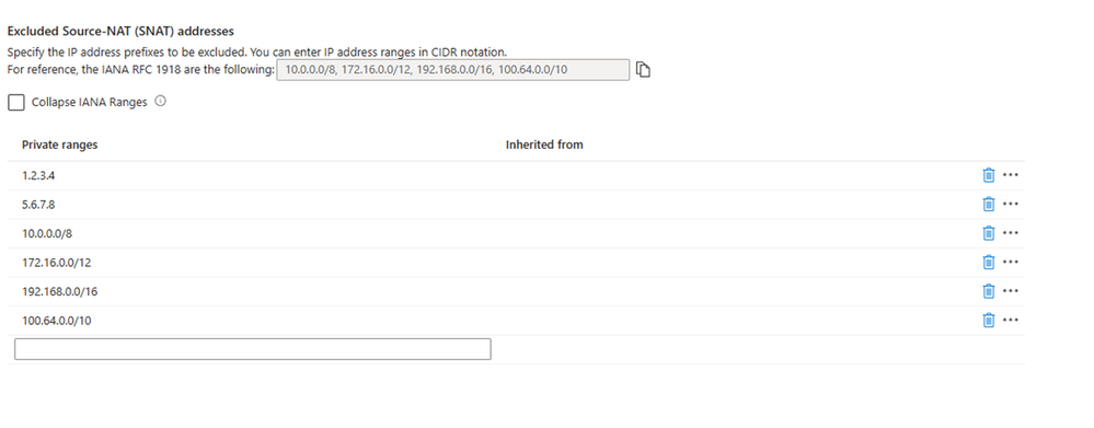 When this PUT request is successful, the following SNAT exclusion is added alongside the default private IP ranges as shown below: