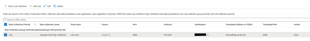 When the PUT request is successful, the following rule is created under DNAT Rule Collection Group as shown below: