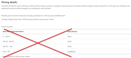 Changes were made recently to the https://azure.microsoft.com/en-us/pricing/details/ddos-protection/ which amount to both less cost and more simplicity in understanding and estimating charges. In thi...