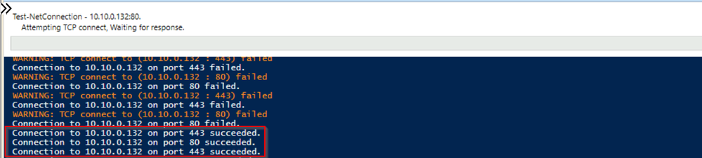 Ok, so here we can see that VM-1 (10.10.0.4) sends a SYN packet from port 53945 to VM-2 (10.10.0.132) on port 80, then VM-2 sends a reset back to VM-1. This behavior shows us that the traffic is successfully passing through Azure Firewall (allowed), and the issue may possibly be something on VM-2. After involving the application team, they have found an issue related to the IIS configuration and it is now fixed as we can see the TCP request being established on ports 80 and 443 in the screenshot below.