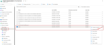 - Create a SAS URL to the container in the storage account: In the Azure Portal go to Storage Account > Containers and select the 3 ellipses at the very right side of the name of the container that you want to use to store the packet captures and select “Generate SAS”.