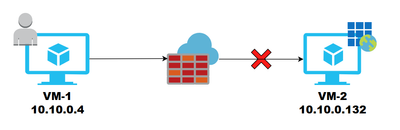 In this blog we have VM-1 (10.10.0.4) unsuccessfully trying to establish HTTP (TCP 80)/HTTPS (TCP 443) connection to VM-2 (10.10.0.132) via Azure Firewall.