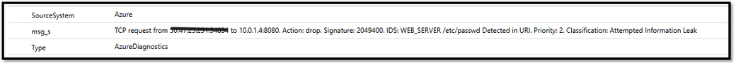 Because the backend connection is denied by Azure Firewall, Application Gateway is unable to establish a successful response and returns a 504 Gateway Timeout to the client, rather than a 403 Forbidden response that would typically be generated by WAF when it blocks traffic. Below is the log from Azure Firewall showing that its able to detect this traffic as – Attempted Information Leak. As seen below, the traffic passed Application Gateway+WAF but was caught by Azure Firewall: