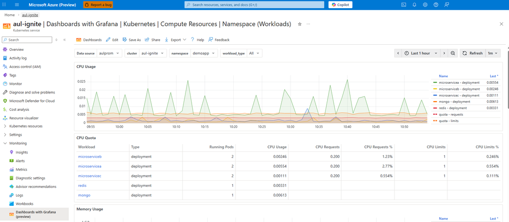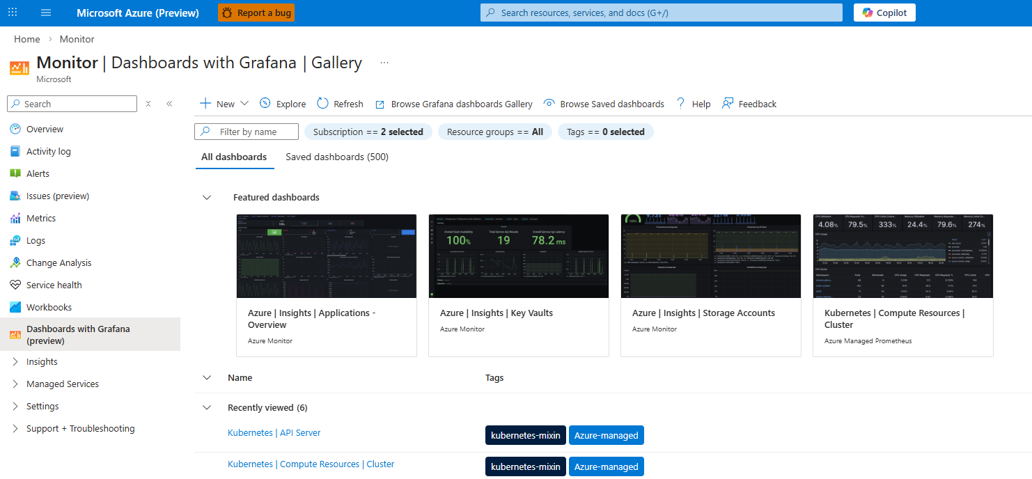 See a detailed solution comparison of Dashboards with Grafana and Azure Managed Grafana here.