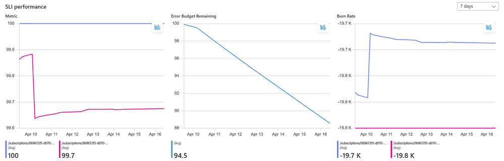 These SLIs then power downstream experiences such as baseline tracking, error budgets, burn rate visualization, and alerting—all within Azure Monitor. While Error budgets help teams determine how much degradation they can afford within a given time window and guide decisions such as whether to continue feature rollouts or prioritize reliability improvements. Burn rates indicate how quickly the error budget is being consumed, enabling teams to detect excessive degradation early and take corrective action before user experience is significantly impacted.